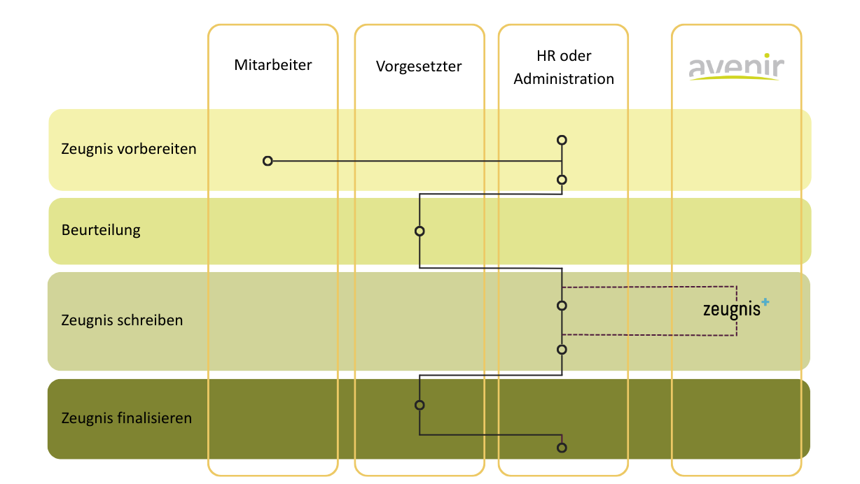 Jedem Arbeitszeugnis wird eine verantwortliche HR-Person zugeteilt, welche gemeinsam mit dem Vorgesetzten den Arbeitszeugnisprozess vorantreibt.