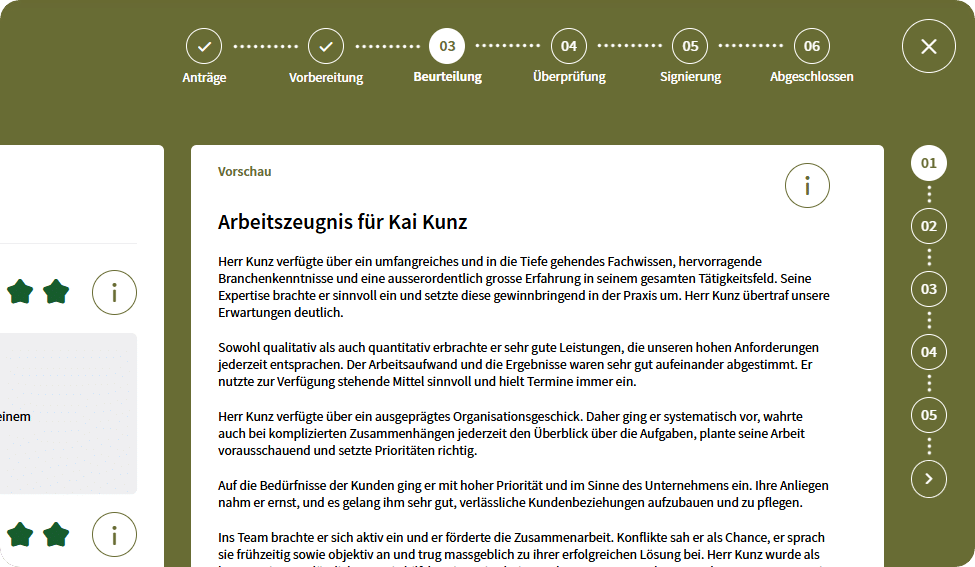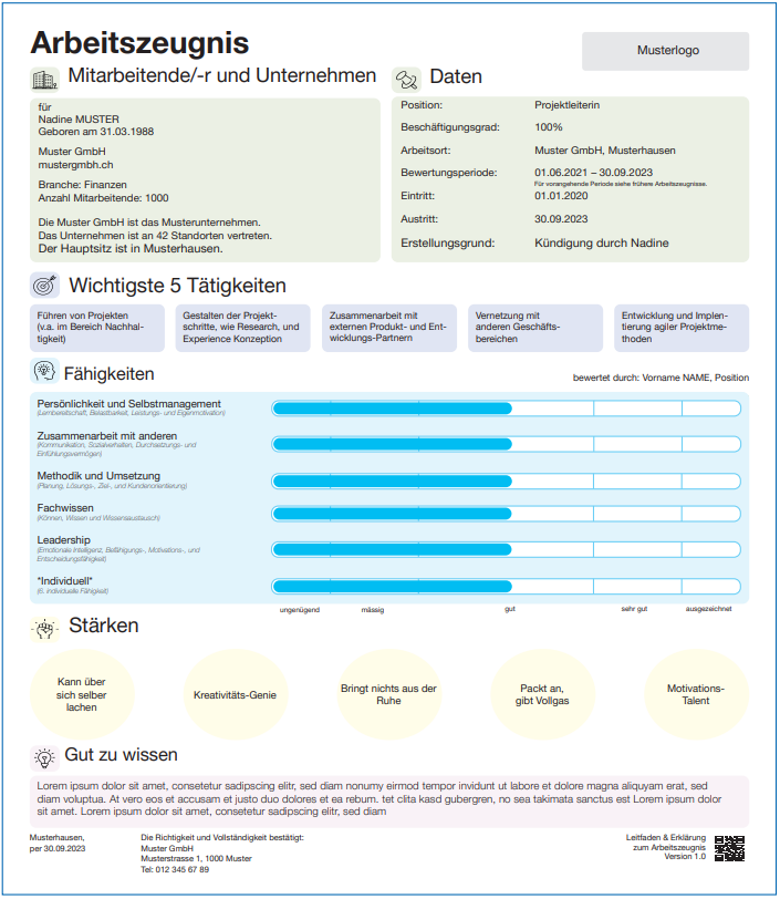 Das Zeugnis 2.0 bietet eine moderne und transparente Lösung für die Erstellung und Bewertung von Arbeitszeugnissen. Dabei wird der wahre Wert der Arbeit klar und verständlich dargestellt, was gleichermassen einen Mehrwert für Arbeitgeber und Arbeitnehmer schafft.
