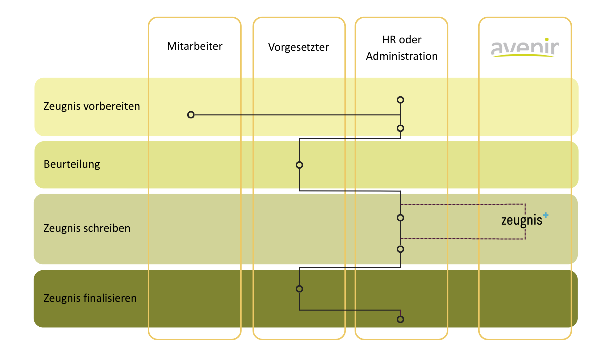 Jedem Arbeitszeugnis wird eine verantwortliche HR-Person zugeteilt, welche gemeinsam mit dem Vorgesetzten den Arbeitszeugnisprozess vorantreibt.
