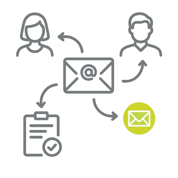 zeugnis.ch basiert auf einem intelligenten, bewährten Workflow, der alle relevanten Personen in der passenden Rolle einbindet. Die Kommunikation im Zeugnisprozess ist vollständig in zeugnis.ch integriert – inklusive automatisch generierter E-Mails und Erinnerungsfunktionen. So bleibt der Austausch effizient und nachvollziehbar.