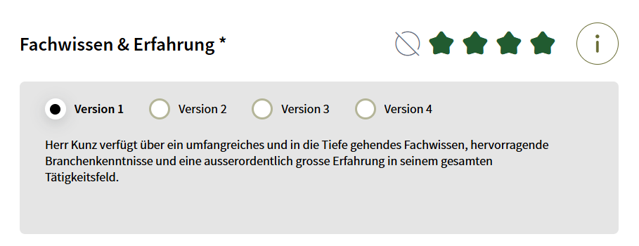 Das Zeugnis 2.0 bietet eine moderne und transparente Lösung für die Erstellung und Bewertung von Arbeitszeugnissen. Dabei wird der wahre Wert der Arbeit klar und verständlich dargestellt, was gleichermassen einen Mehrwert für Arbeitgeber und Arbeitnehmer schafft.